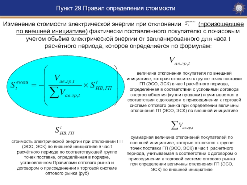 определяемое как размер обязательств/требований по оплате электрической энергии в объёме отклонений на оптовом рынке