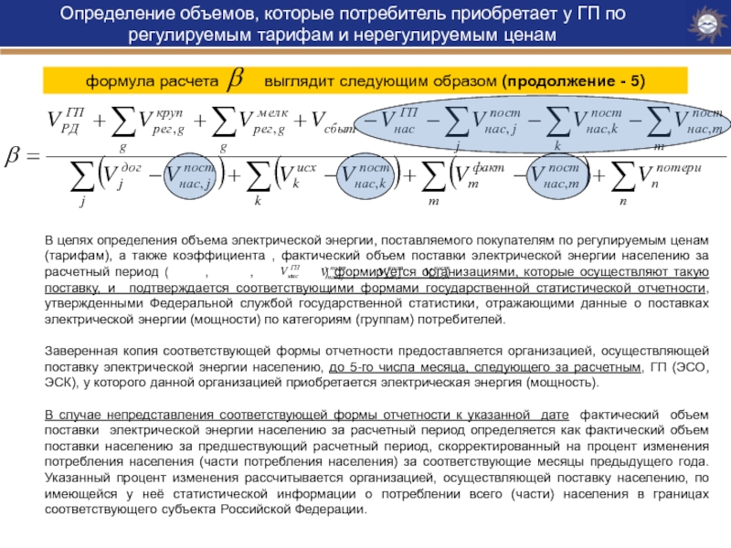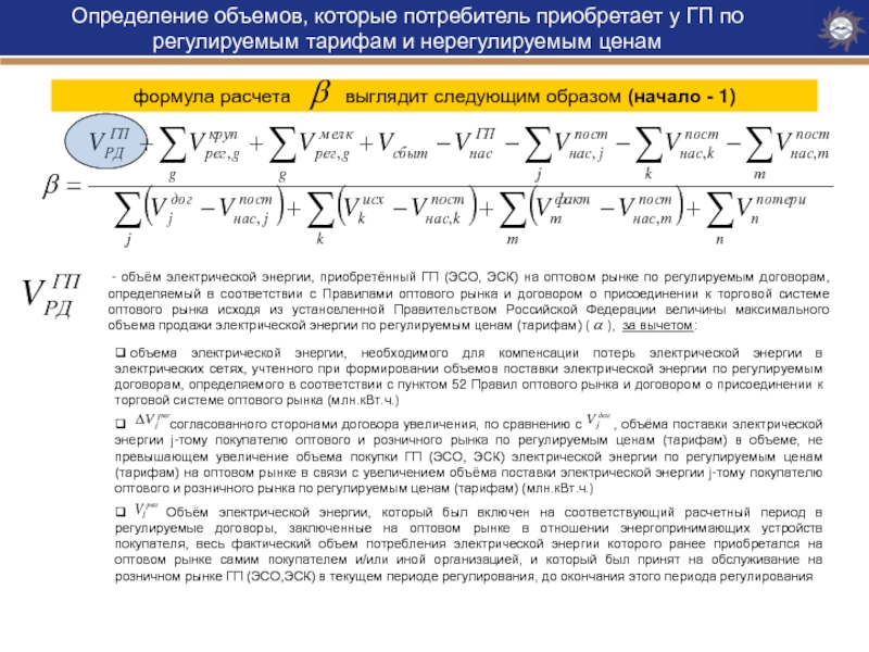 Стоимость электрической энергии, поставляемой ГП (ЭСО, ЭСК) по регулируемым ценам покупателям…определяется с учетом коэффициента распределения электрической энергии, поставляемой ГП (ЭСО, ЭСК) на розничном рынке по регулируемым ценам (β)…