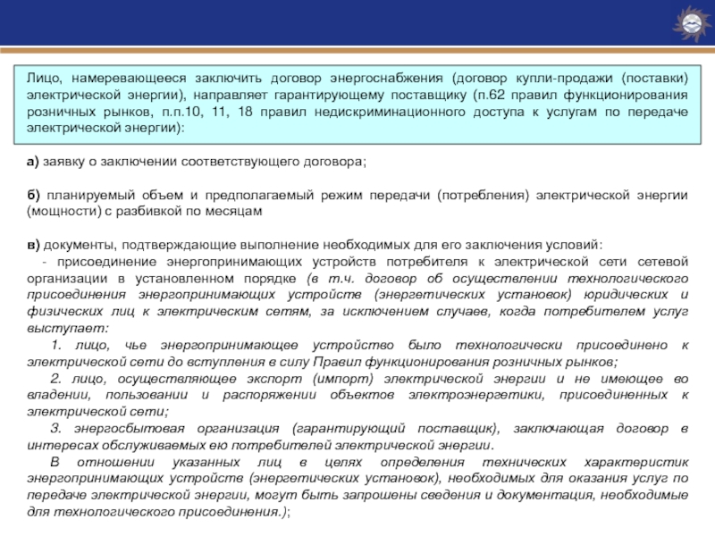 Представление в соответствии с договорами энергоснабжения гарантирующим поставщиком интересов обслуживаемых им покупателей электрической энергии в отношениях с территориальными сетевыми организациями, иными собственниками (владельцами) объектов электросетевого хозяйства и с системным оператором (субъектом оперативно-диспетчерского управления в технологически изолированной территориальной электроэнергетической системе) не требует специальных полномочий.