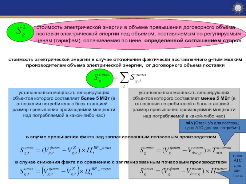 стоимость электрической энергии в случае отклонения фактически поставленного g-тым мелким производителем объема электрической энергии, от договорного объема поставки
