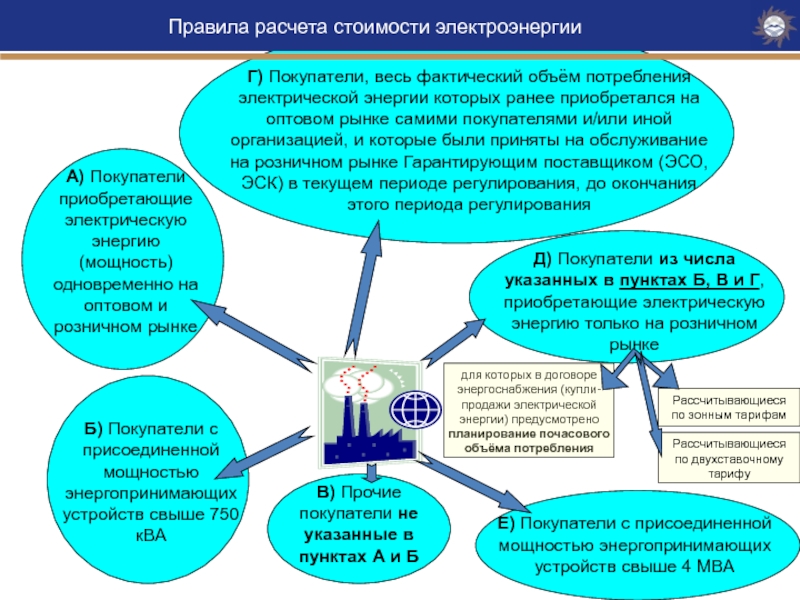 На розничных рынках… электрическая энергия (мощность) поставляется потребителям (обслуживающим их покупателям) по регулируемым ценам (тарифам):