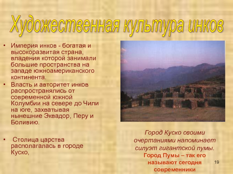 Город Куско своими очертаниями напоминает силуэт гигантской пумы. Город Пумы – так его называют сегодня современники