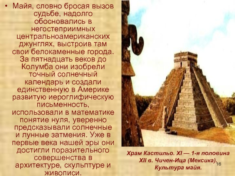 Храм Кастильо. XI — 1-я половина XII в. Чичен-Ица (Мексика). Культура майя.