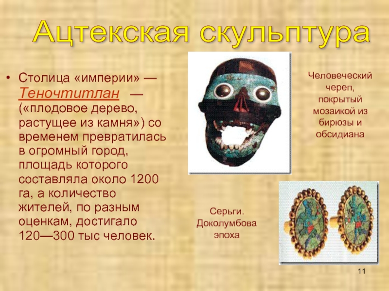 Человеческий череп, покрытый мозаикой из бирюзы и обсидиана
