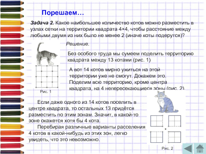 Без особого труда мы сумеем поделить территорию квадрата между 13 котами (рис. 1)