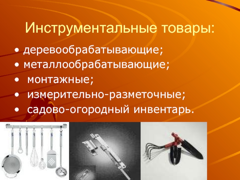 - Инструменты для обработки почвы: лопаты, грабли, мотыги, рожковые рыхлители, полольники, культиваторы и мелкий инструмент для обработки почвы.