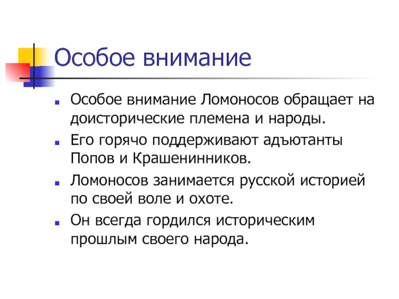 Особое внимание Ломоносов обращает на доисторические племена и народы.