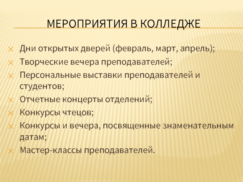 Слайд 14МЕРОПРИЯТИЯ В КОЛЛЕДЖЕ