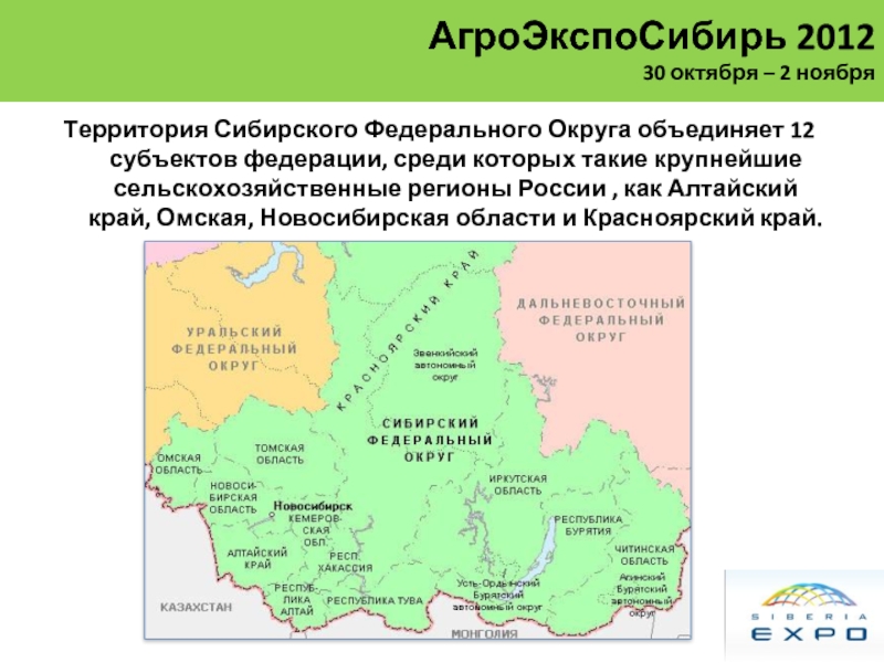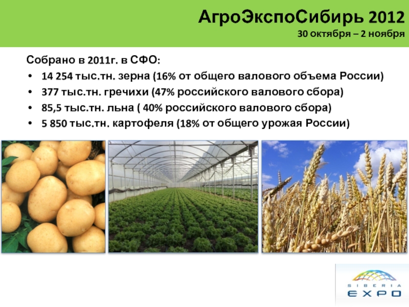 Крупнейшая в Сибири международная сельскохозяйственная выставка АгроЭкспоСибирь 2012 будет проходить в новом самом современном выставочном комплексе «Новосибирск Экспоцентр» (www.novosibexpo.ru).