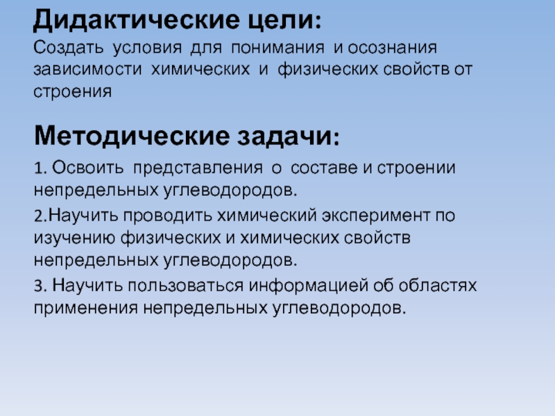 1. Освоить представления о составе и строении непредельных углеводородов.