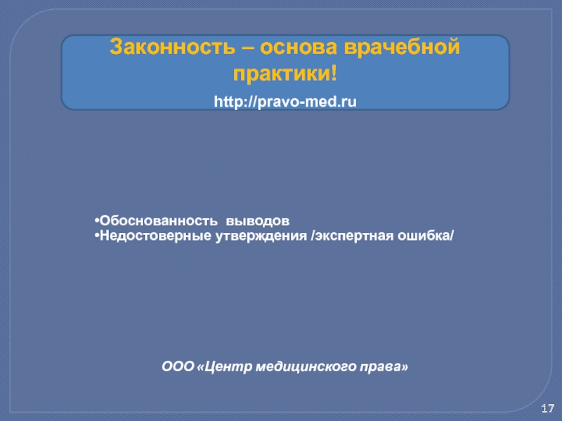 Законность – основа врачебной практики!
