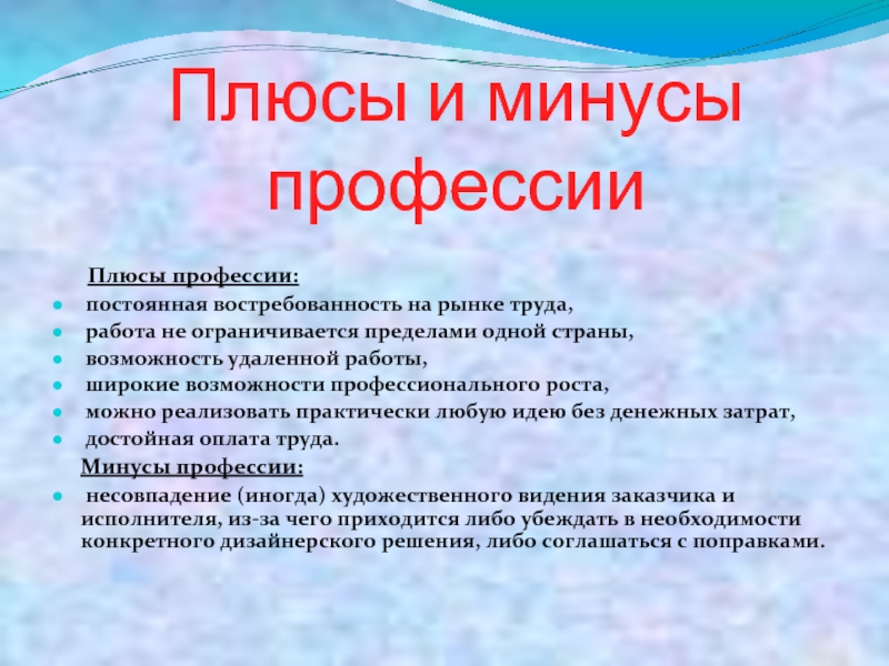 несовпадение (иногда) художественного видения заказчика и исполнителя, из-за чего приходится либо убеждать в необходимости конкретного дизайнерского решения, либо соглашаться с поправками.