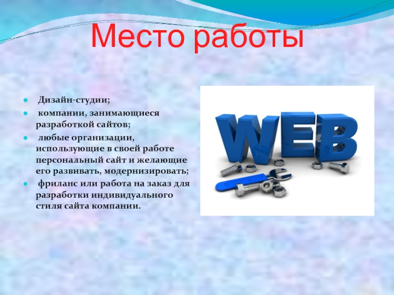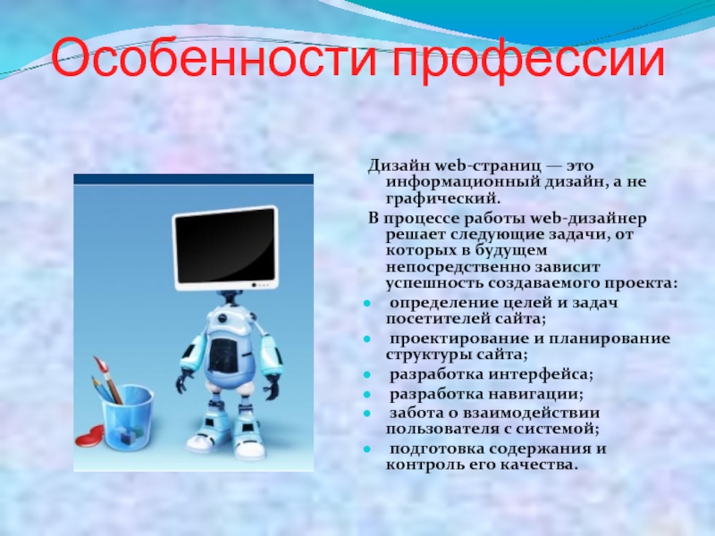 Профессия web–дизайнера появилась только с возникновением мировой компьютерной