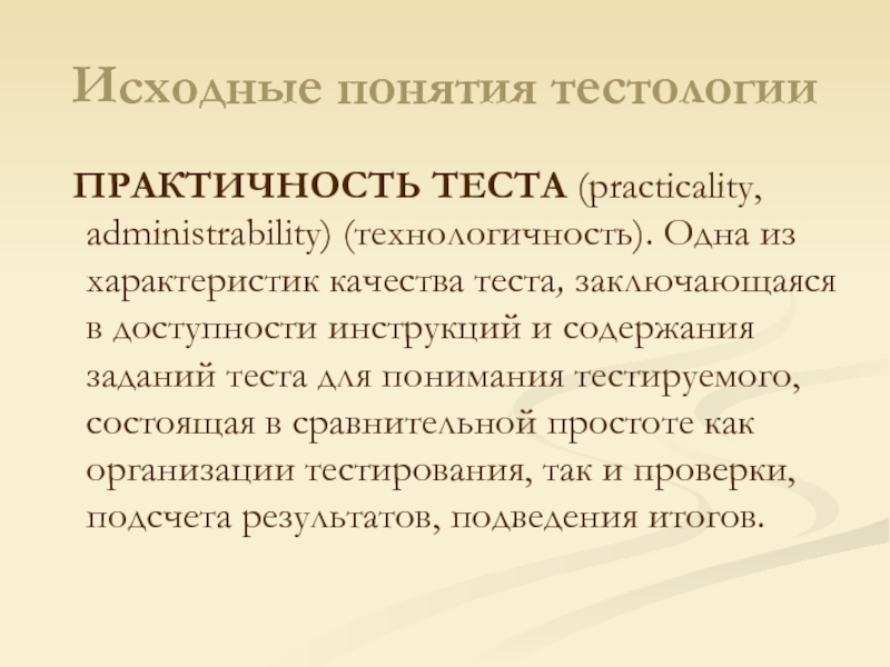 ПРАКТИЧНОСТЬ ТЕСТА (practicality, administrability) (технологичность). Одна из характеристик