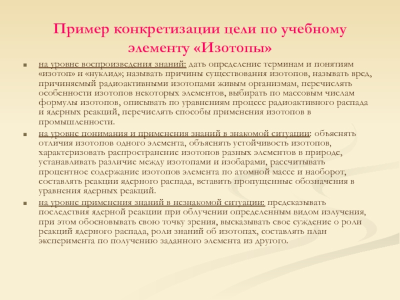 Слайд 55Пример конкретизации цели по учебному элементу «Изотопы»