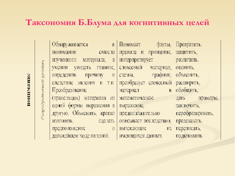 Слайд 49Таксономия Б.Блума для когнитивных целей