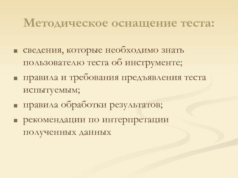 5) стабильность, или стандартность внешних условий тестирования (времени, инструкций, мотивов и оценок).