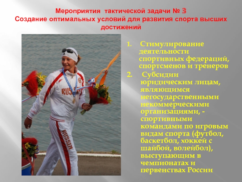 1. Стимулирование деятельности спортивных федераций, спортсменов и тренеров