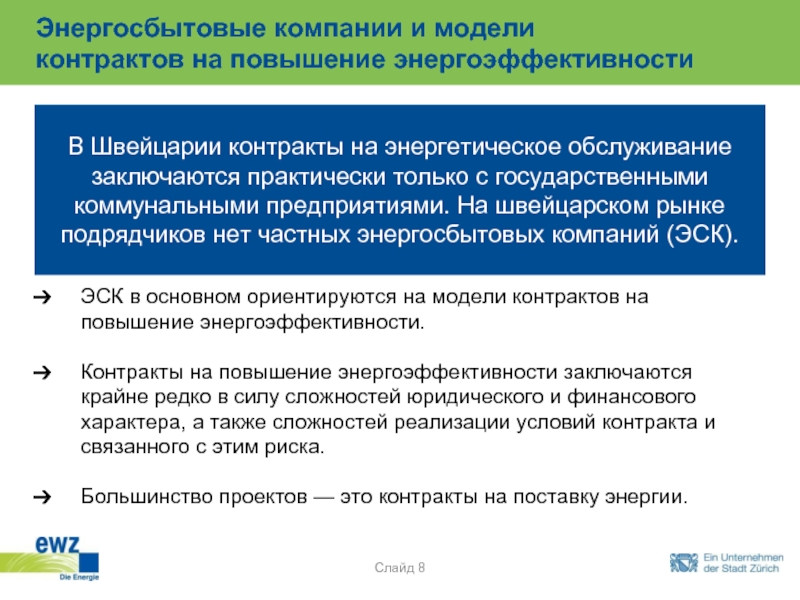 ЭСК в основном ориентируются на модели контрактов на повышение энергоэффективности.