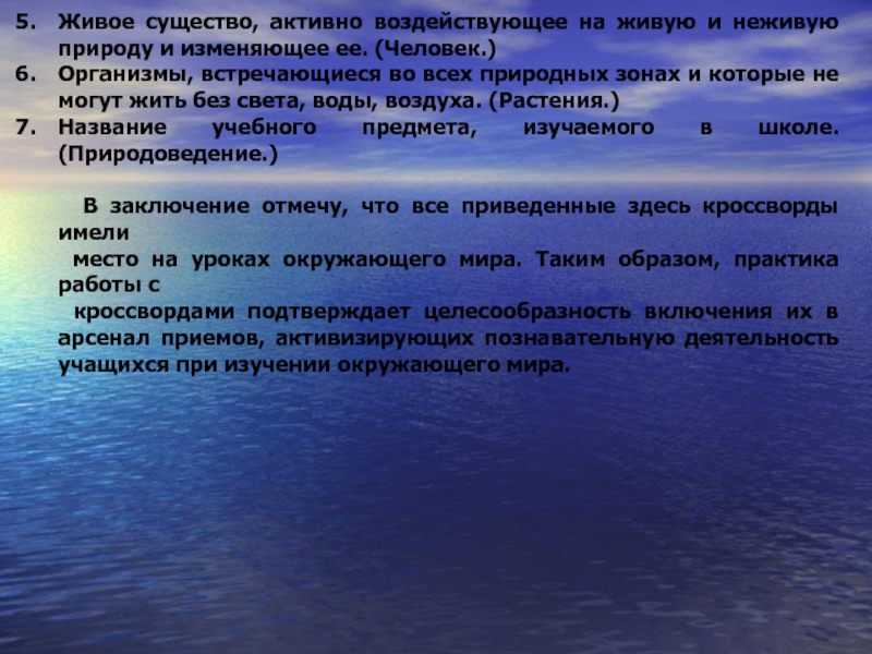 На заключительном уроке по теме «Использование и охрана природы человеком» моим ученикам было интересно работать с таким кроссвордом