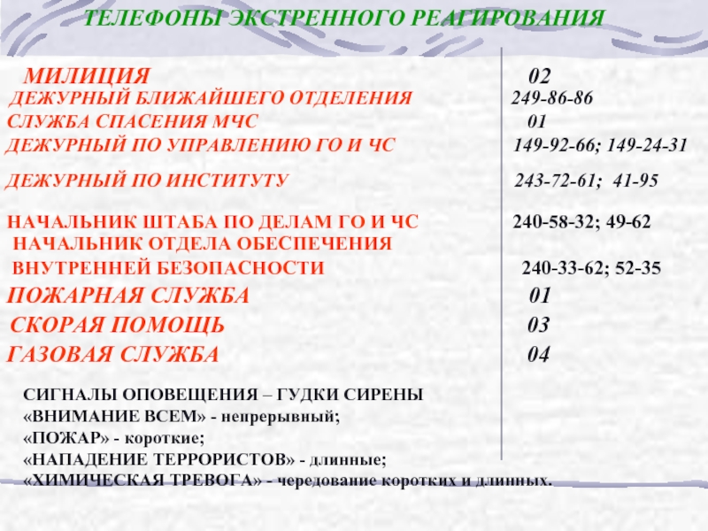 ДЕЖУРНЫЙ ПО ИНСТИТУТУ 243-72-61; 41-95