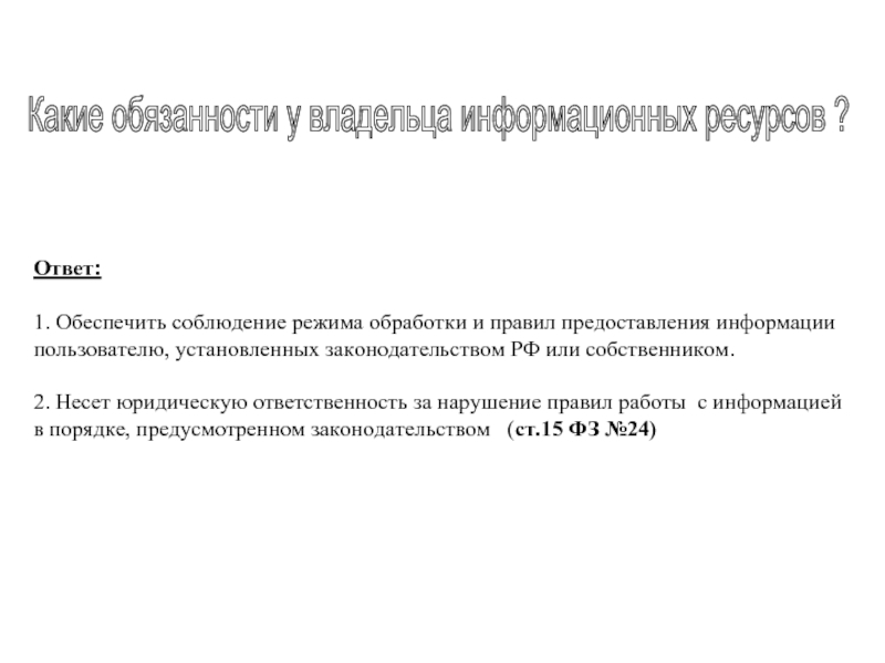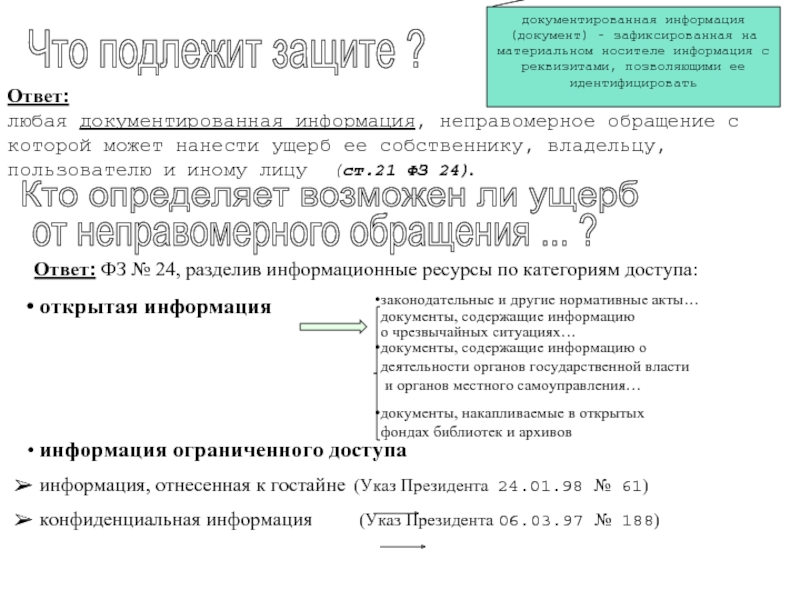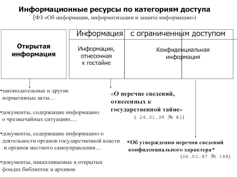 Ответ: ФЗ № 24, разделив информационные ресурсы по категориям доступа:
