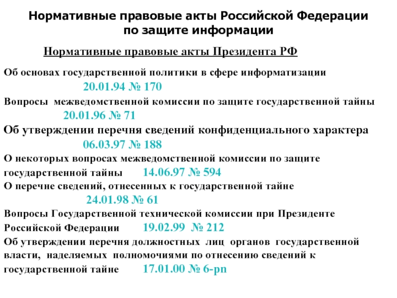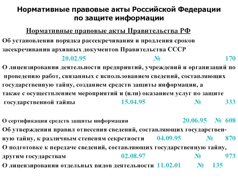 Нормативно-методическое обеспечение деятельности государственной системы защиты информации
