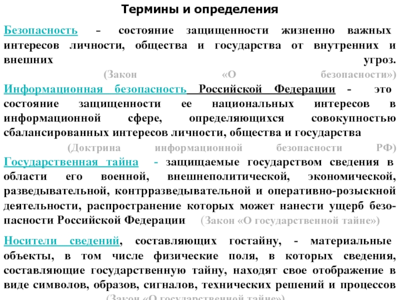 основные положения и требования организационно-распорядительных и нормативно-методических документов по защите информации и контролю ее защищенности;