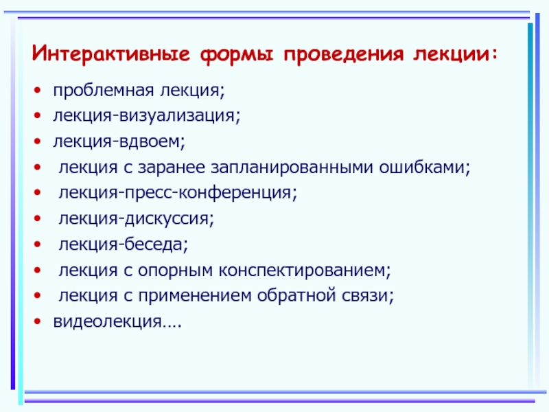 Слайд 13Интерактивные формы проведения лекции: