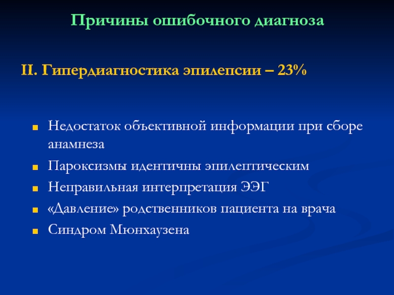 II. Гипердиагностика эпилепсии – 23%
