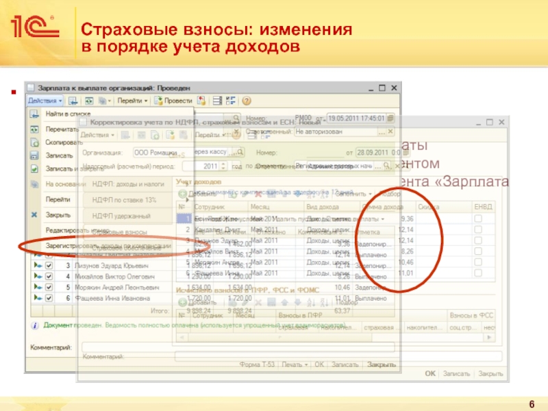 зарплаты регистрируются в учете дополнительным документом специальной командой меню «Действия» документа «Зарплата