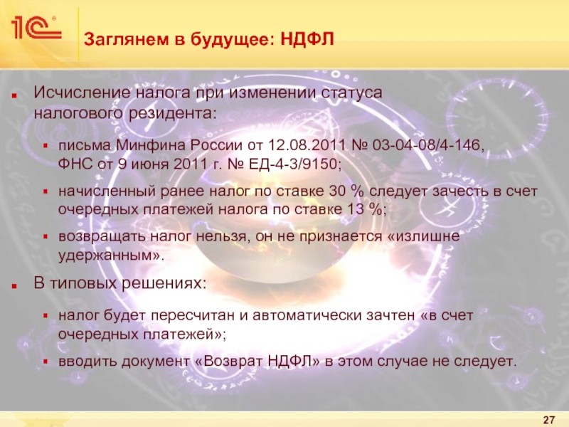 начисленный ранее налог по ставке 30 % следует зачесть в счет очередных платежей налога по ставке 13 %;