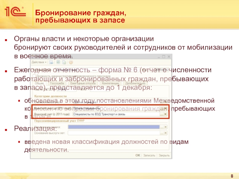 Слайд 8Бронирование граждан, пребывающих в запасе