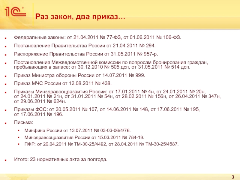 Федеральные законы: от 21.04.2011 № 77-ФЗ, от 01.06.2011
