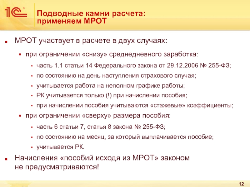 Слайд 12Подводные камни расчета: применяем МРОТ