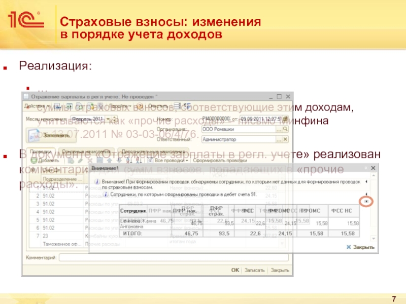 В документе «Отражение зарплаты в регл. учете» реализован комментарий для сумм взносов, попадающих в «прочие расходы».