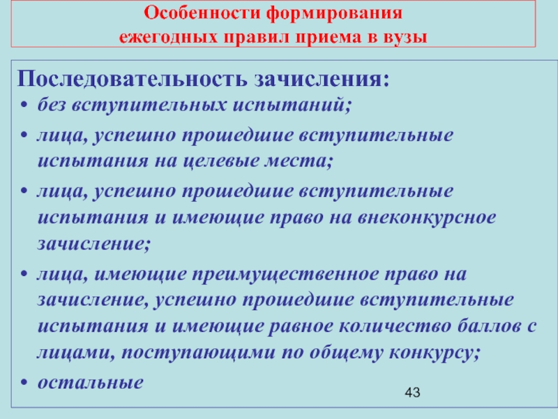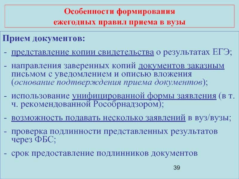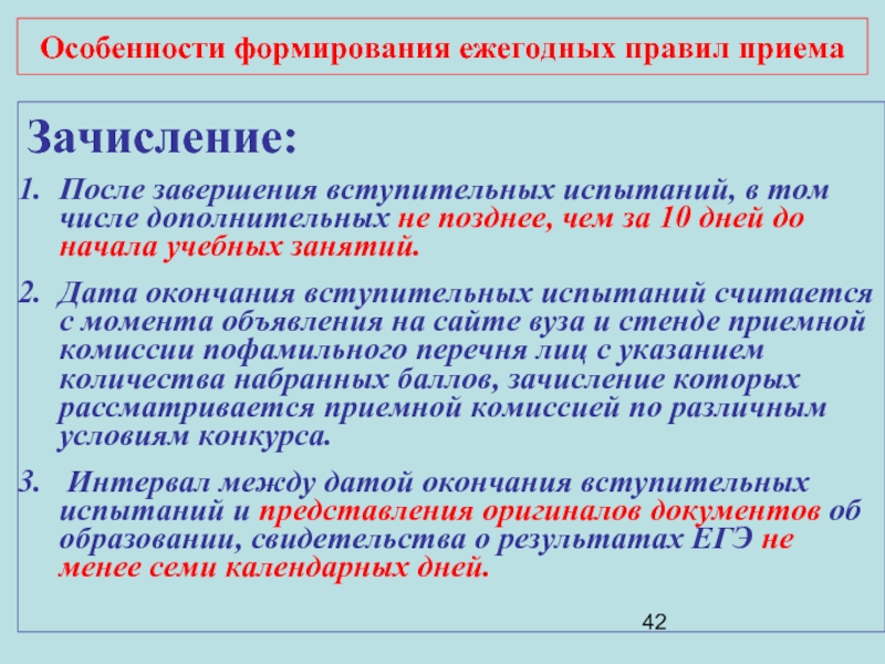 Слайд 49Особенности формирования ежегодных правил приема в учреждение СПО
