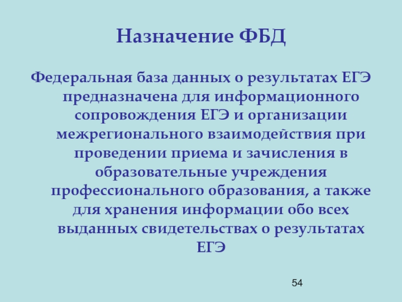 Федеральная база данных о результатах ЕГЭ предназначена для информационного сопровождения