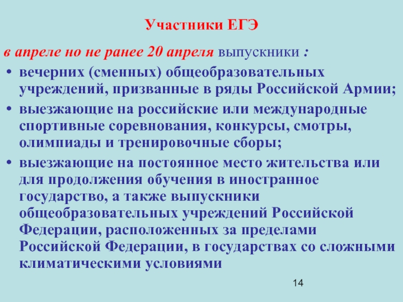 ЕГЭ выпускники и поступающие, сдающие ЕГЭ в апреле- мае - июне;