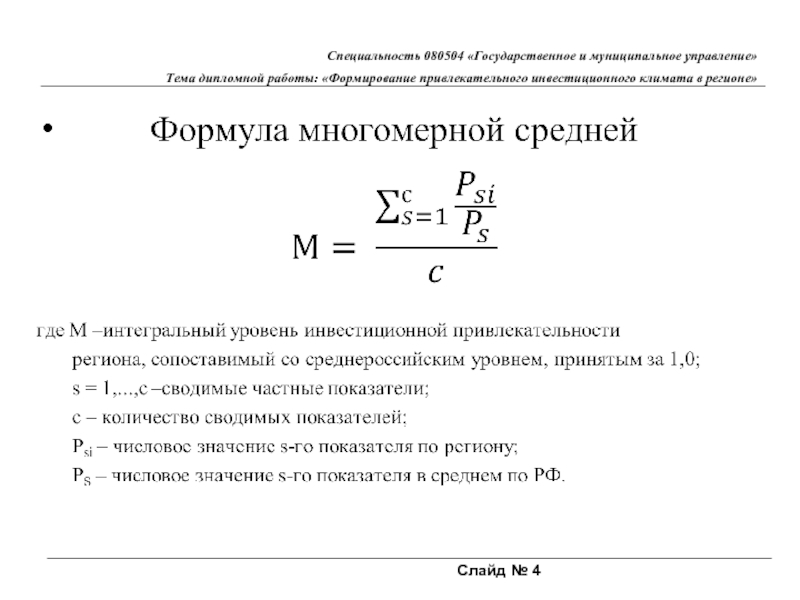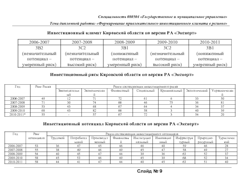 Тема дипломной работы: «Формирование привлекательного инвестиционного климата в регионе»