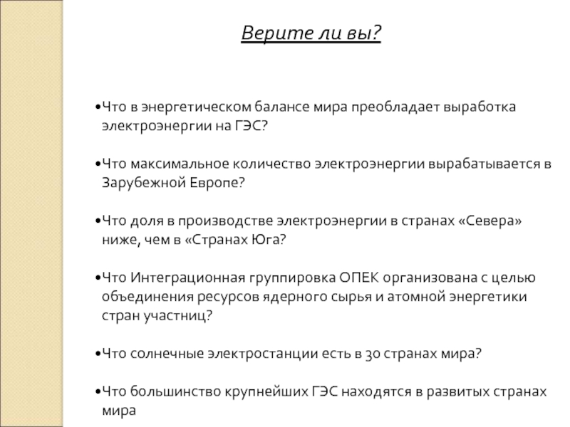 Что доля в производстве электроэнергии в странах «Севера» ниже, чем в «Странах Юга?