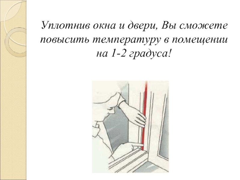 Слайд 12Уплотнив окна и двери, Вы сможете повысить температуру в помещении на