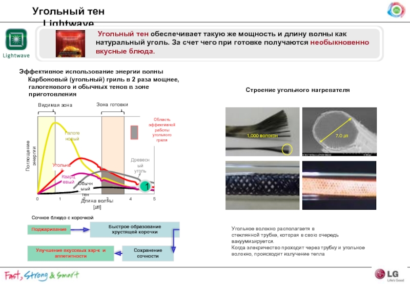 Угольный тен обеспечивает такую же мощность и длину волны как натуральный уголь. За счет чего при готовке получаются необыкновенно вкусные блюда.