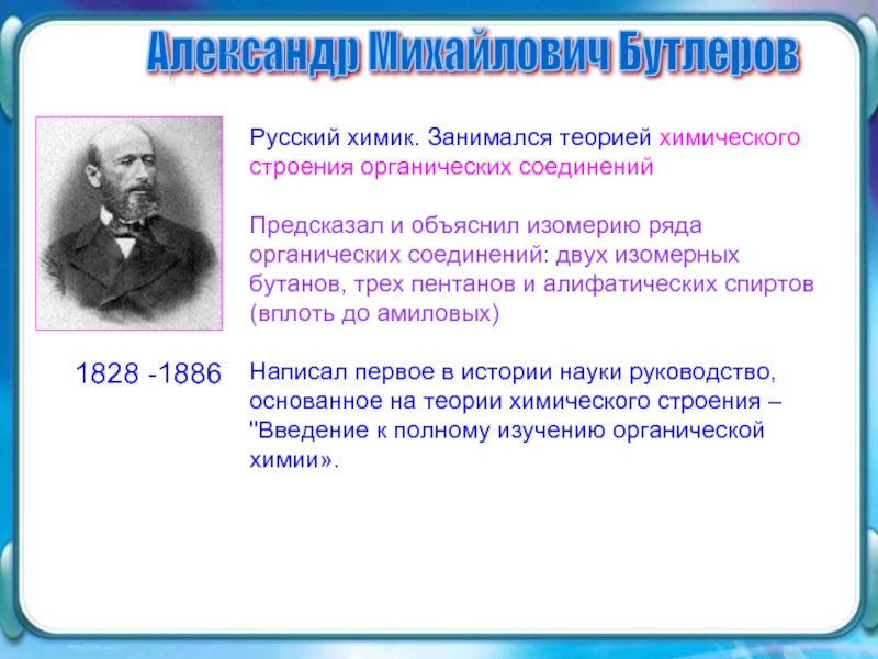 Он автор первого русского учебника «Органическая химия» и книги «Основы химии»