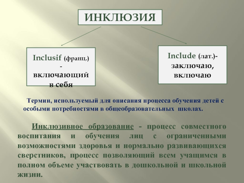 Термин, используемый для описания процесса обучения детей с особыми потребностями в общеобразовательных школах.