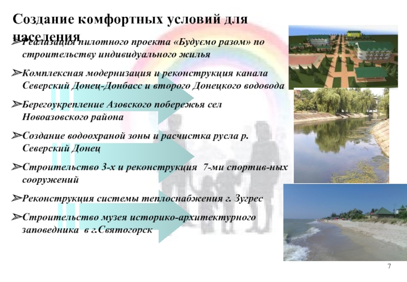 Строительство и реконструкция 38 км сетей водоснабжения, 21 км тепловых сетей, строительство 84 км газопроводов