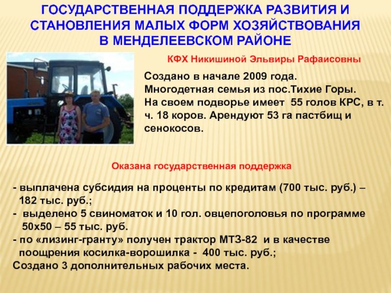- по «лизинг-гранту» получен трактор МТЗ-82 и в качестве