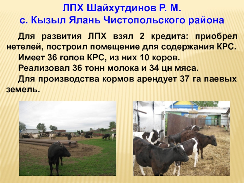 - выделено 5 свиноматок и 10 гол. овцепоголовья по программе