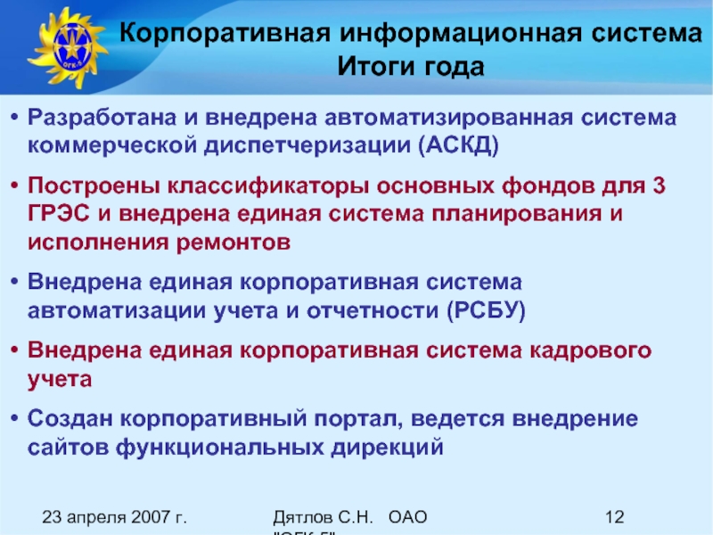 Построены классификаторы основных фондов для 3 ГРЭС и внедрена единая система планирования и исполнения ремонтов