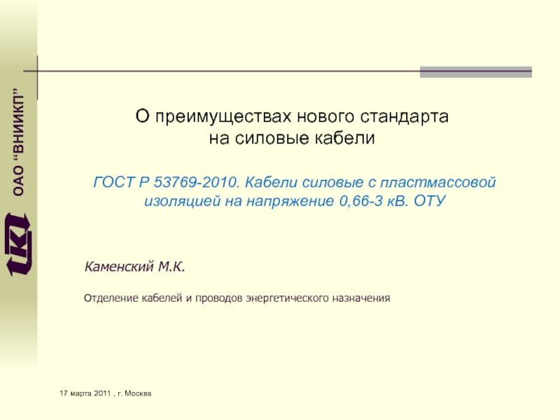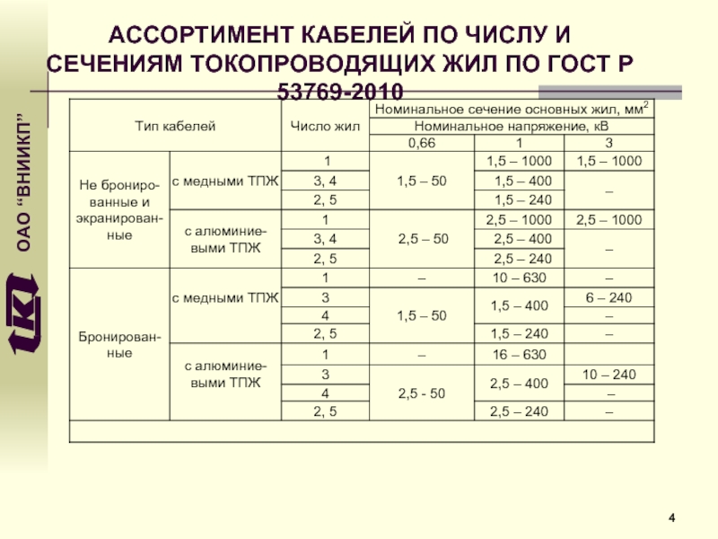ГОСТ Р 53769-2010. Кабели силовые с пластмассовой изоляцией на напряжение 0,66-3 кВ. ОТУ
